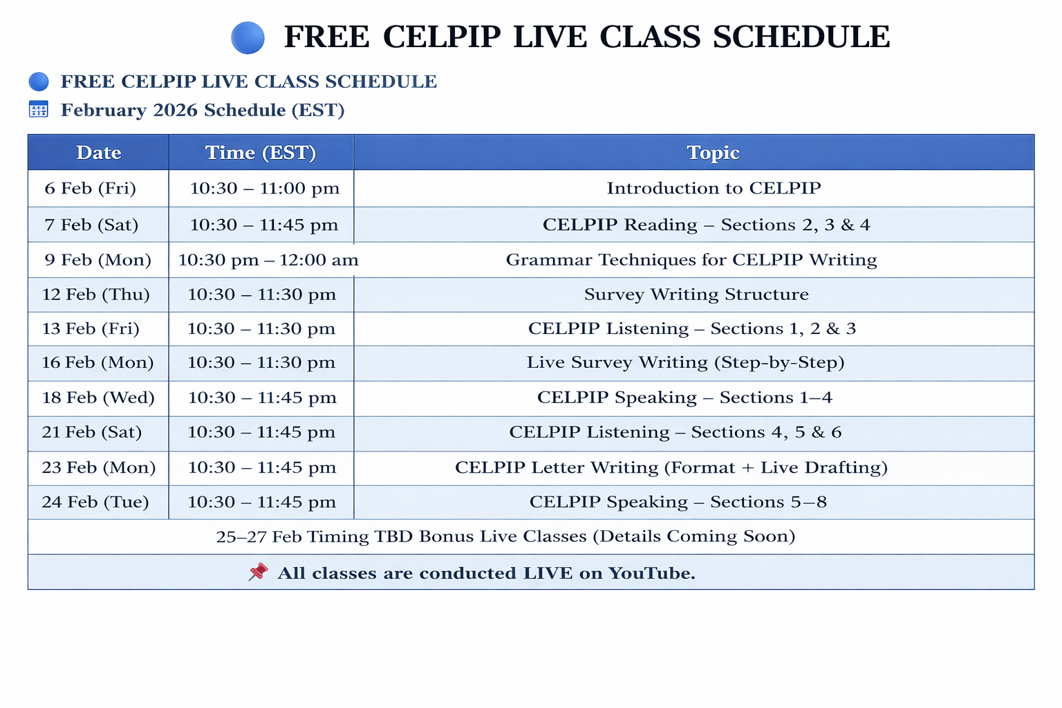 Free CELPIP Live Classes – February 2026